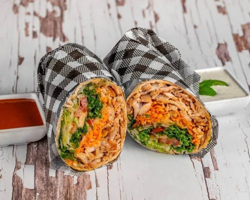 Succulent Chicken marinated in middle eastern herbs. Fresh lettuce and juicy Tomatoes. Onion and Carrots. Your choice of sauces. Wrapped in our warm toasted pita bread.