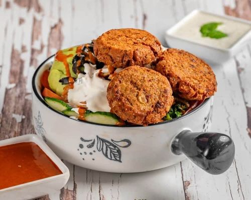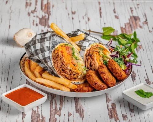 A vegetarian delight. Crisp on the outside and tender on the inside. Fresh lettuce and juicy Tomatoes. Onion and Carrots. Your choice of sauces. Wrapped in our warm toasted pita bread.